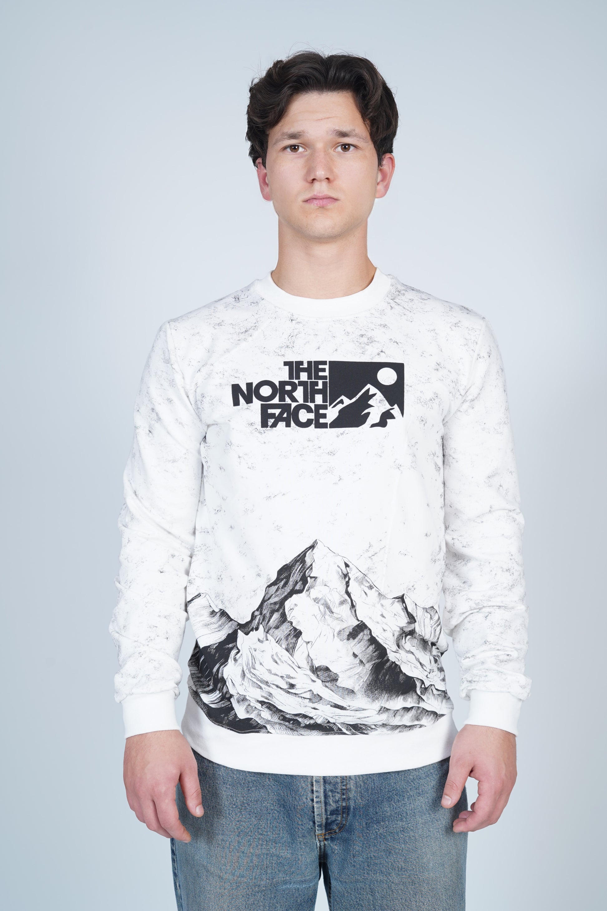 The North Face Bisiklet Yaka Dağ Manzaralı Desenli Sweatshirt